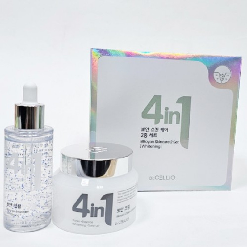Набор для лица Dr.Cellio 4 in 1 Skin Care 2 Set включает ампулу 50 мл и крем 70 мл с эффектом тон-ап. Этот комплект обеспечивает комплексный уход: увлажнение, питание, выравнивание тона кожи и антивозрастное действие. Ампула интенсивно насыщает кожу активными ингредиентами, улучшая её текстуру и тон, а крем завершает уход, придавая естественное сияние и мягкость. Формулы обогащены натуральными экстрактами и витаминным комплексом, подходят для всех типов кожи, включая чувствительную. Легкая текстура быстро впитывается, не оставляет липкости и идеально подходит для ежедневного использования.
