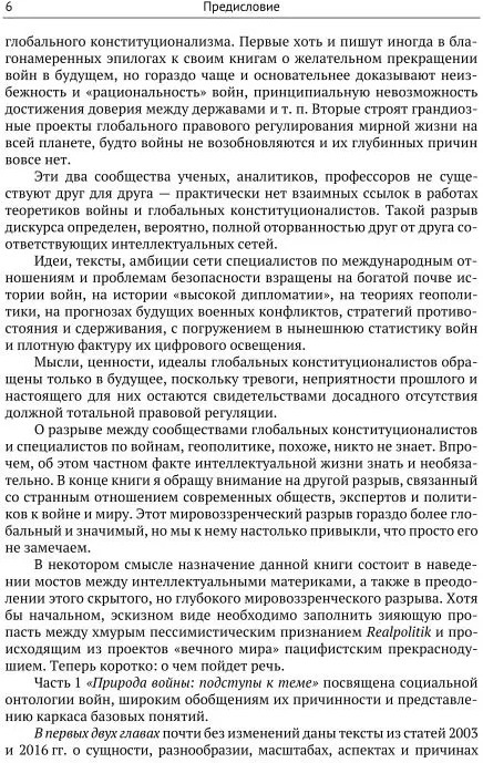 Последние главы книги посвящены труднейшим проблемам преодоления войн. Смысл истории понимается как самоиспытание человечества на способность продвижения к гуманным порядкам, в которых каждый человек защищен (принцип антропростасии). Соответственно, в таких порядках агрессивные войны недопустимы и должны эффективно пресекаться. Показано, что для этого необходимо верховенство права в геополитике, обеспеченное системой авторитетных независимых международных судов, решения которых подкреплены солидарной силой. Такого рода проекты глобального конституционализма сталкиваются с могучими препятствиями, в числе которых слабость, неправовой характер международных организаций и неприятие сильнейшими державами, в том числе демократическими, каких-либо ограничений своей внешней политики. С учетом природы и причин войн, с привлечением механизмов международного соперничества и социальной эволюции намечены пути преодоления этих препятствий.
