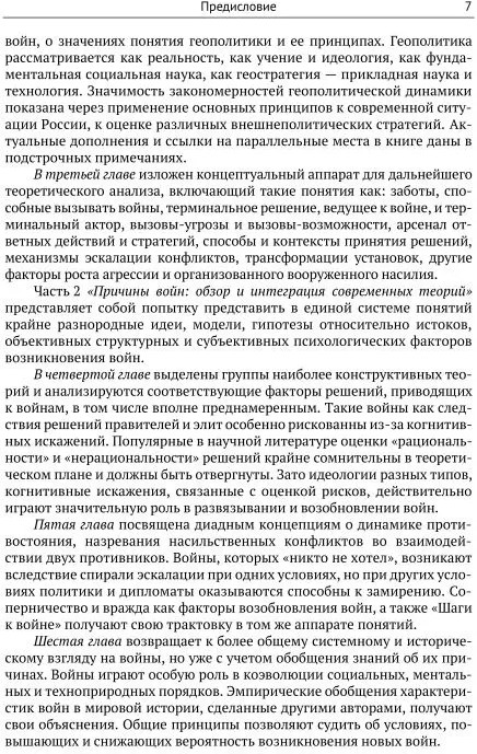 Книга посвящена раскрытию природы и сущности войн, теориям причин их возникновения, а также условиям и возможностям продвижения к миру без войн — глобальному правовому порядку, в котором каждый человек защищен. Проведен онтологический и категориальный анализ социального бытия, частью которого по сию пору (или навсегда?) являются войны. Обсуждаются типы войн, их разнообразие, повсеместность и нерегулярное возобновление, связь войн с кризисами и революциями, исторические тренды в военной сфере, типы акторов, значимых для войны и мира, а также типовые человеческие заботы, интересы, установки, ведущие к войнам. Геополитика трактуется многомерно: как реальность (сфера взаимодействий относительно контроля над территориями), как наука об этой реальности, как политическое учение, идеология и как прикладная дисциплина — геостратегия. С теоретических позиций рассмотрена российская геополитическая ситуация.