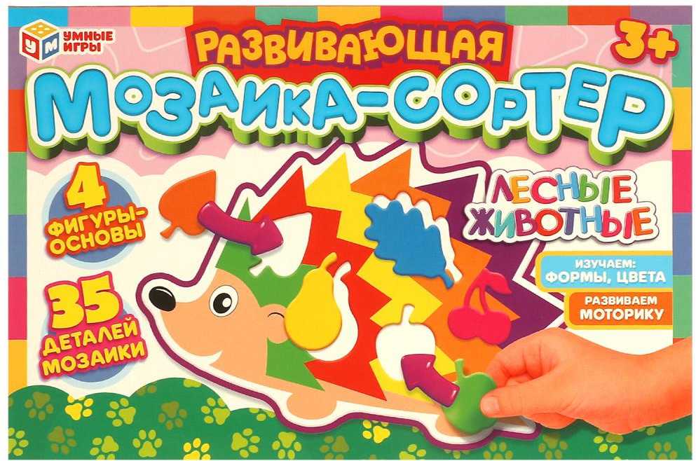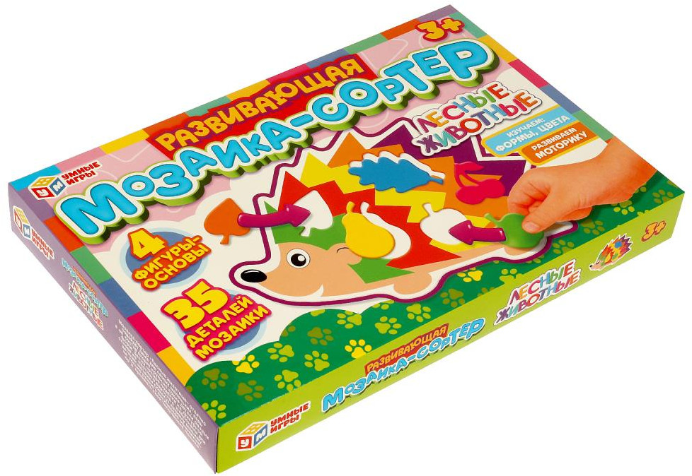 Умные игры Мозаика-сортер развивающая «Лесные животные»В данный момент этот товар отсутствует в продаже. Возможно, у нас найдется аналогичный или похожий товар здесь. Развивающая мозаика-сортер «Лесные животные» ТМ «Умные игры» — отличный подарок для вашего малыша. В процессе игры ребёнок должен подобрать к каждой фигурке-основе детали мозаики правильной формы. В процессе игры малыш потренирует моторику, выучит новые формы, повторит названия цветов и познакомиться с лесными животными. Игрушка с мозаикой-сортером ТМ «Умные игры» развивает: мелкую моторику рук, ассоциативное мышление, логику и кругозор. |