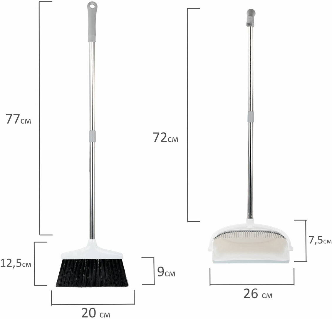 Совок для мусора и щетка на длинных рукоятках Laima предназначены для комфортной и безупречной уборки мусора в помещении. Компактные размеры и возможность вертикального хранения позволят разместить этот комплект в любом удобном месте вашего дома. Прочные материалы и продуманная конструкция делают этот комплект незаменимым помощником в уборке, обеспечивая максимальный комфорт и высокую эффективность без лишних усилий! На совке имеются пластиковые выступы для легкой очистки щетки от мусора и кромка из поливинилхлорида по краю, которая обеспечивает более плотное прилегание к полу и предотвращает просыпание мусора. Ручка щетки и совок имеют специальные отверстия для удобного хранения.