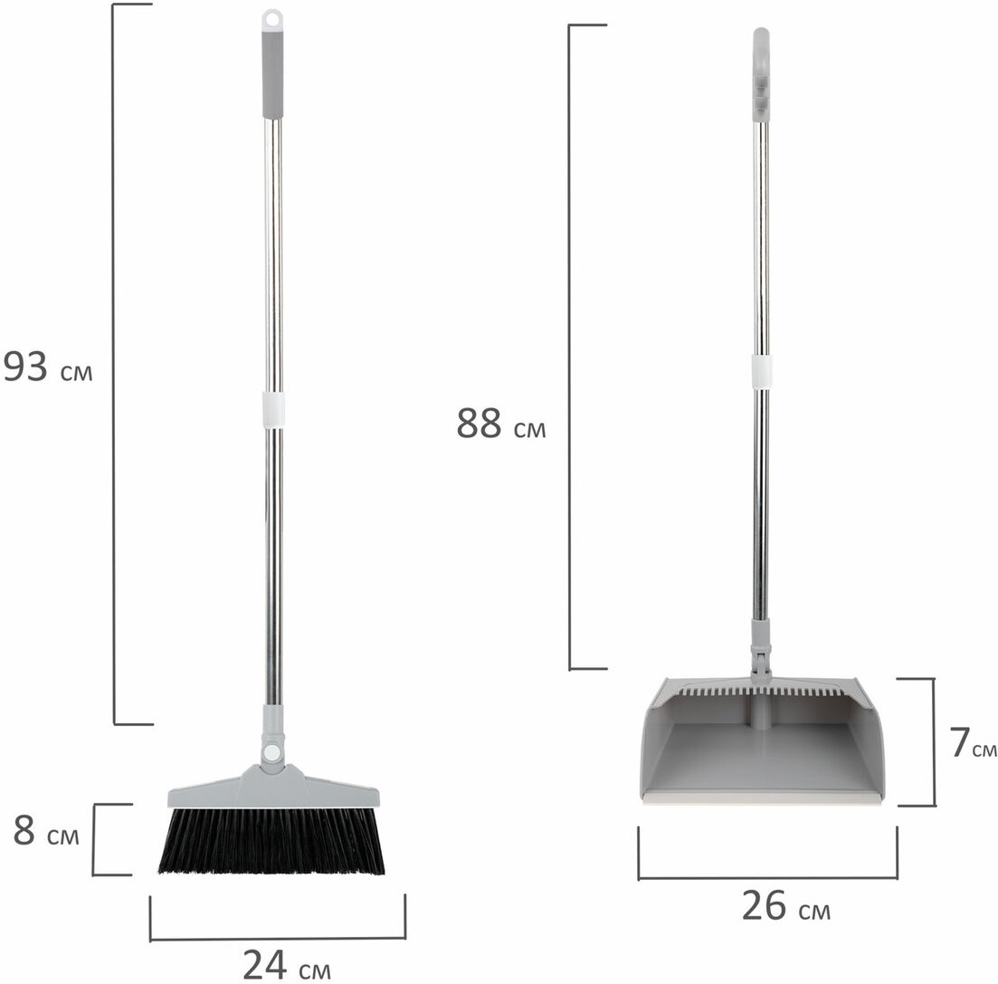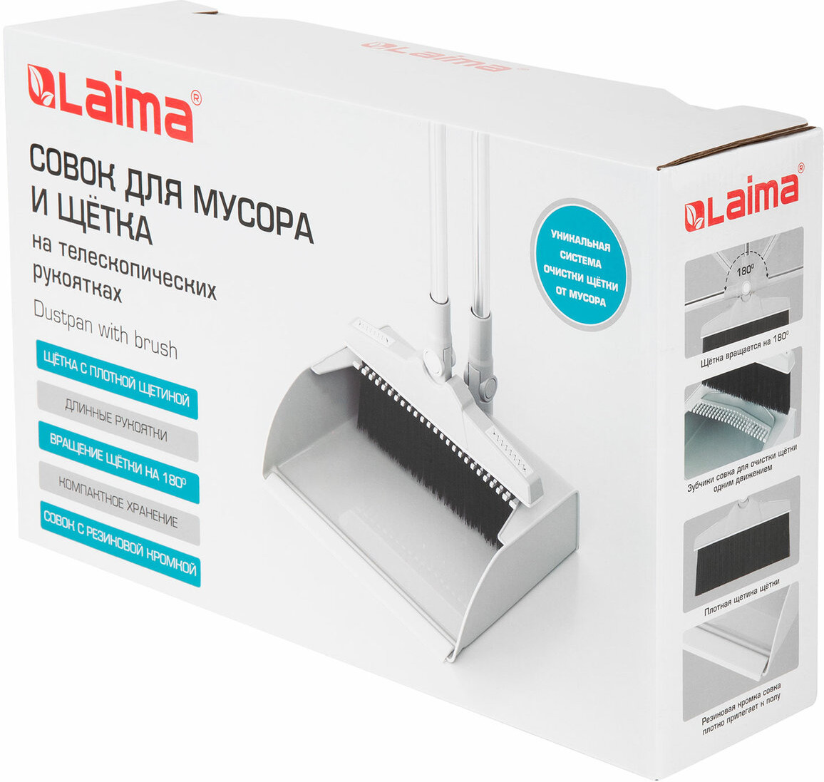 Ручка щетки вращается на 180°. Это позволяет добраться до самых труднодоступных мест во время уборки. Ручки щетки и совка регулируются по длине, что позволяет подобрать оптимальную высоту для комфортной уборки.