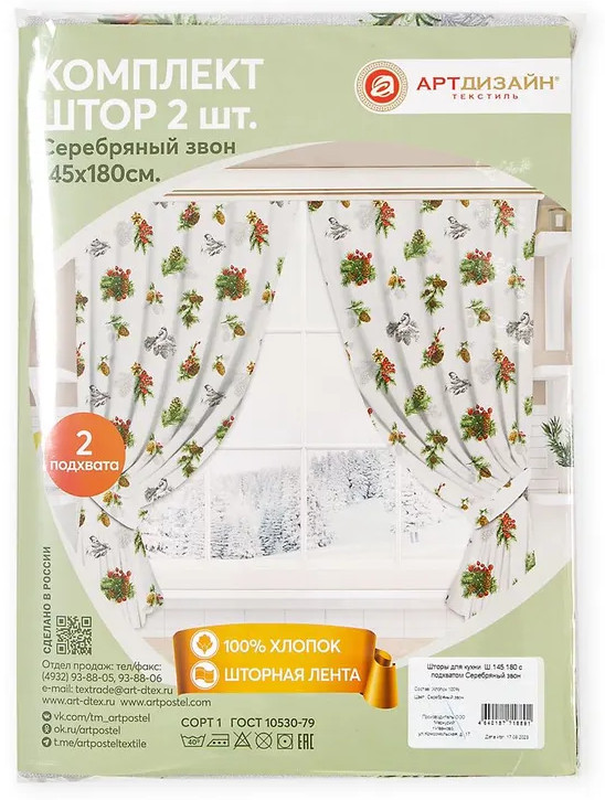АртДизайн Комплект штор для кухни с подхватом «Серебряный звон»