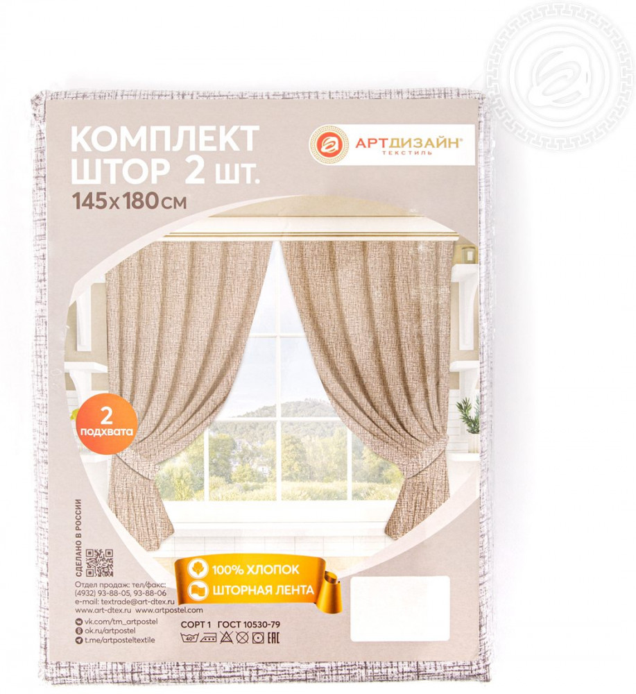 АртДизайн Комплект штор для кухни с подхватом «Лен капучино»