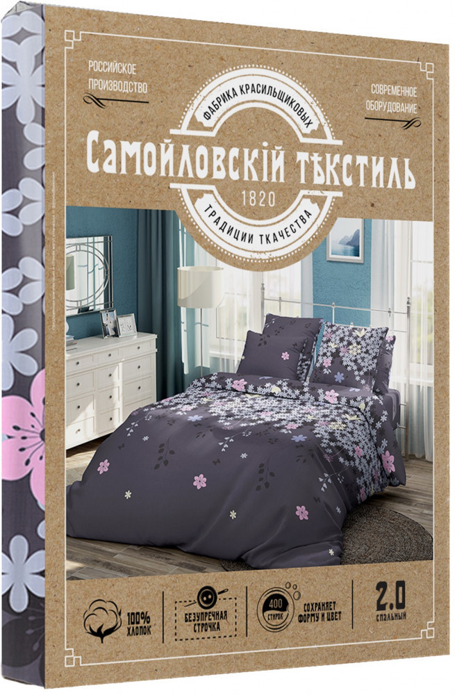 Нежные дизайны постельного белья наполнят спальню нежностью и расслабляющей атмосферой. На таком белье засыпать одно удовольствие. Вы сможете подобрать дизайн белья под настроение и создать эффектный акцент на кровати, который сделает интерьер неповторимым и модным. Ткань бязь полотняного переплетения из 100% хлопка сочетает в себе преимущества натуральной ткани: сохранение сухого тепла, отсутствие статического электричества, гигроскопичность и неприхотливость в уходе. При этом она обладает мягкой на ощупь внешней поверхностью, за счет технологии двойного мягчения. Постельное белье марки Самойловский текстиль — это качественное постельное белье, изготовленное из традиционных материалов по новому рецепту!