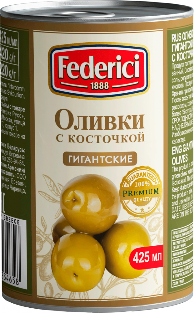 Federici Оливки с косточкой «Гигантские»В данный момент этот товар отсутствует в продаже. Возможно, у нас найдется аналогичный или похожий товар здесь. Насладитесь по-настоящему крупными оливками с косточкой от итальянского производителя Federici. Эти гигантские оливки в 2-3 раза больше обычных, но такие же сочные и ароматные. Выращены в Италии по традиционным технологиям из лучших сортов. Отлично подойдут для перекусов, салатов, горячих блюд. Косточка внутри сохраняет все полезные свойства. Выбирайте проверенное качество от Federici! |