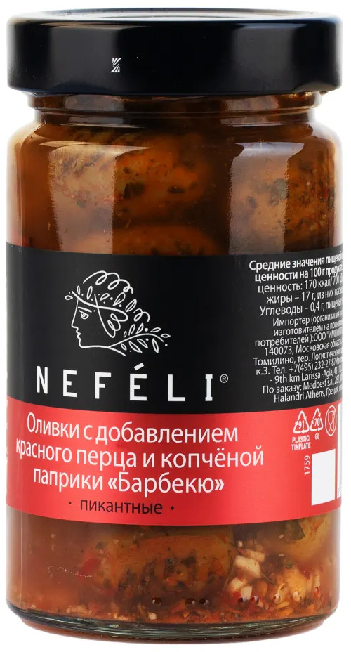 Nefeli Оливки с добавлением красного перца и копчёной паприки «Барбекю»-25% +97