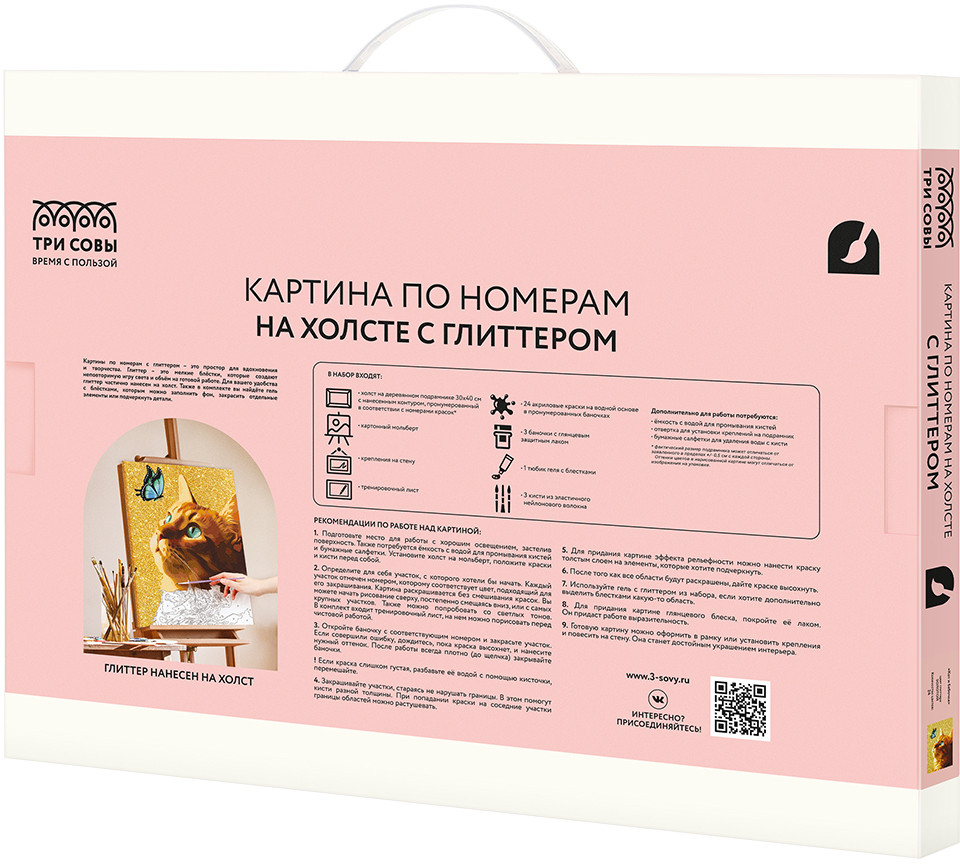 💳 Оплатить за товар можно при получении 🇰🇿 Есть бесплатная доставка по Казахстану от 1 дня 🎁 Копите бонусы с каждой покупки Картина по номерам на холсте с глиттером «Кот и бабочка» бренда «ТРИ СОВЫ» поможет раскрыть творческие способности. Отделка холста глиттером создает эффект сияния и придает картине очаровательную уникальность. Данный метод рисования способствует развитию внимания и концентрации, аккуратности, пониманию концепции построения фигуры через цветовые оттенки, развивает чувство вкуса. Процесс рисования доставит обладателям набора большое эстетическое удовольствие, а созданные своими руками картины помогут украсить интерьер дома или станут прекрасным подарком. Упакована в красочную картонную коробку. |