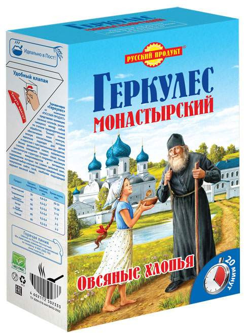 Русский Продукт Хлопья овсяные «Геркулес монастырский»-25% +32 вкусные разваристые высокое качество грубая клетчатка