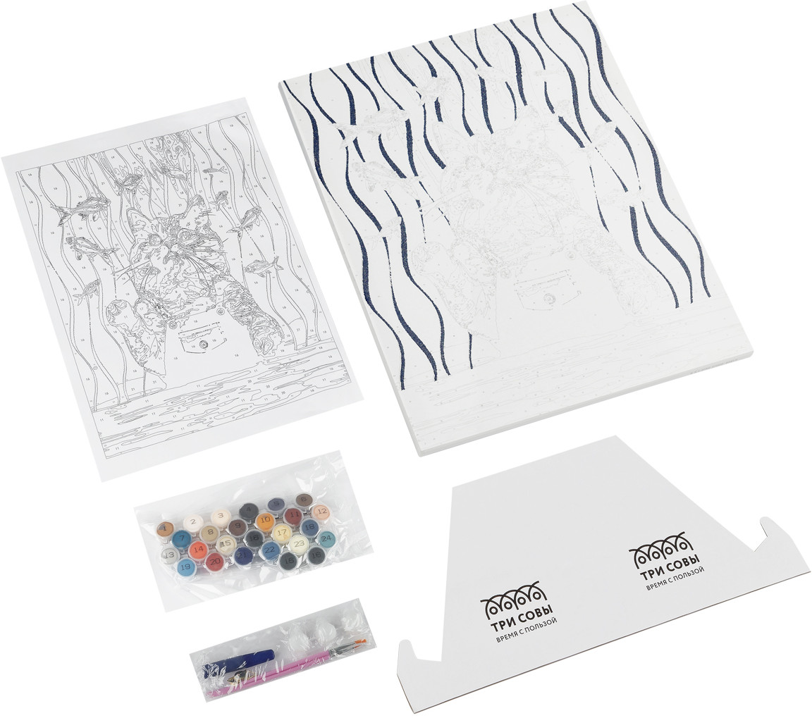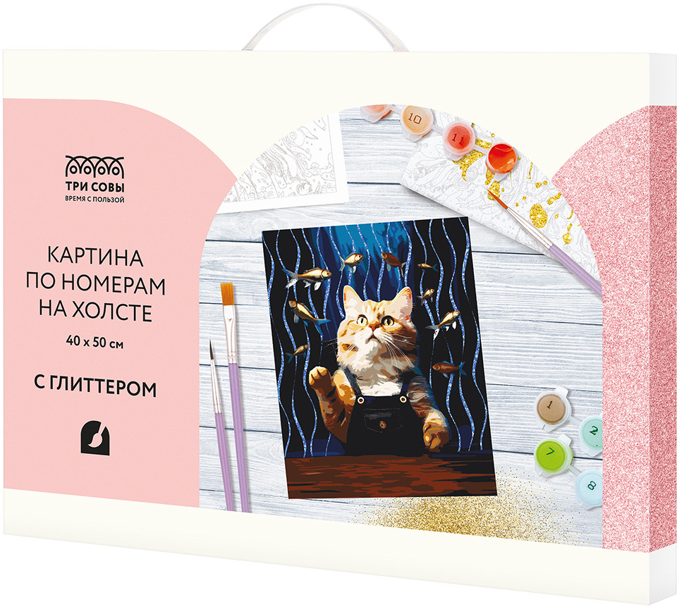 • холст с глиттером на деревянном подрамнике размером 40×50 см с нанесенным контуром, пронумерованный в соответствии с номерами красок. Технология точной разбивки сюжета картины на разные цветовые оттенки гарантируют правильность исполнения полотна;
