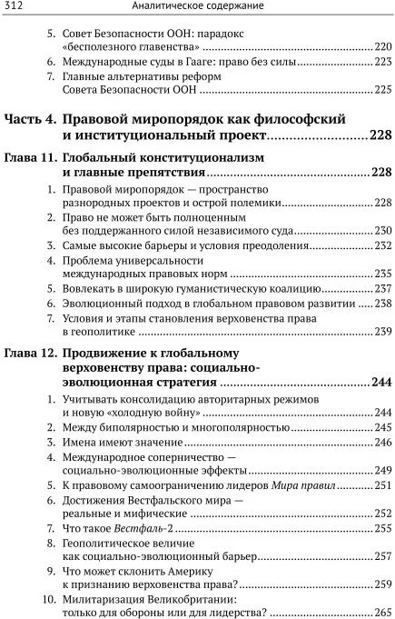 Последние главы книги посвящены труднейшим проблемам преодоления войн. Смысл истории понимается как самоиспытание человечества на способность продвижения к гуманным порядкам, в которых каждый человек защищен (принцип антропростасии). Соответственно, в таких порядках агрессивные войны недопустимы и должны эффективно пресекаться. Показано, что для этого необходимо верховенство права в геополитике, обеспеченное системой авторитетных независимых международных судов, решения которых подкреплены солидарной силой. Такого рода проекты глобального конституционализма сталкиваются с могучими препятствиями, в числе которых слабость, неправовой характер международных организаций и неприятие сильнейшими державами, в том числе демократическими, каких-либо ограничений своей внешней политики. С учетом природы и причин войн, с привлечением механизмов международного соперничества и социальной эволюции намечены пути преодоления этих препятствий.