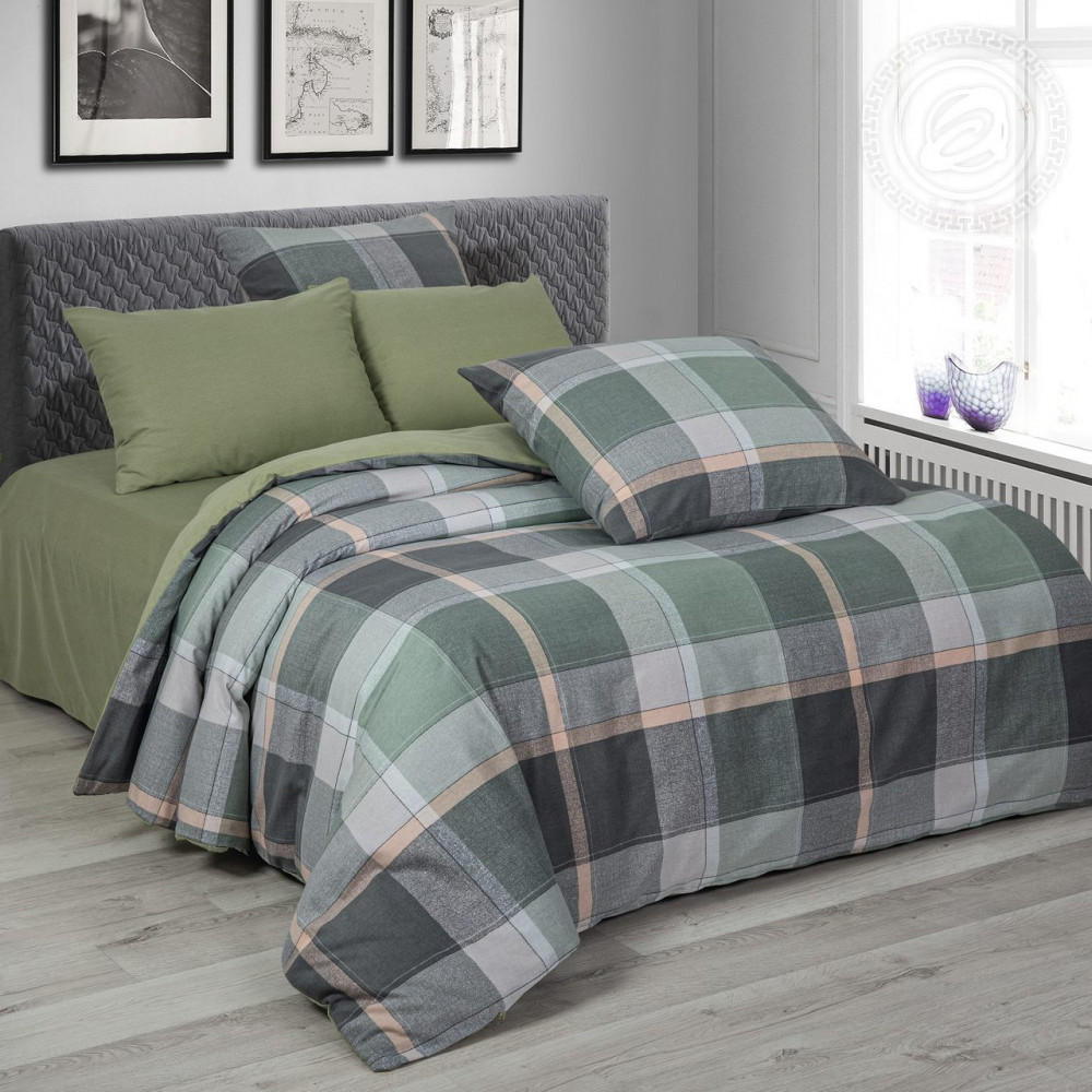 «Клаус» — образ сдержанности и минимализма. На постельном белье из смесовой ткани «велюр» узор в виде клетки. Геометрия дополнена гармоничным сочетанием оттенков: от спокойного зеленого до благородного серого. Отличный подарок для тех, кто любит классику.