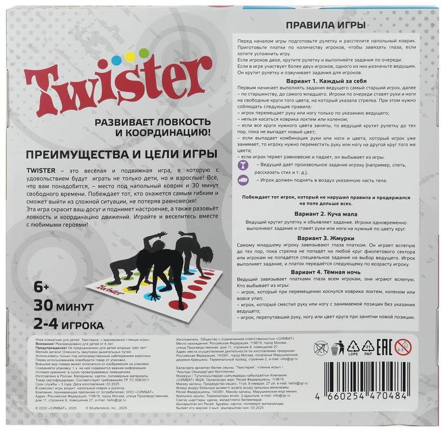 | Умные игры Игра комнатная «Twister»+117 (бонусов)