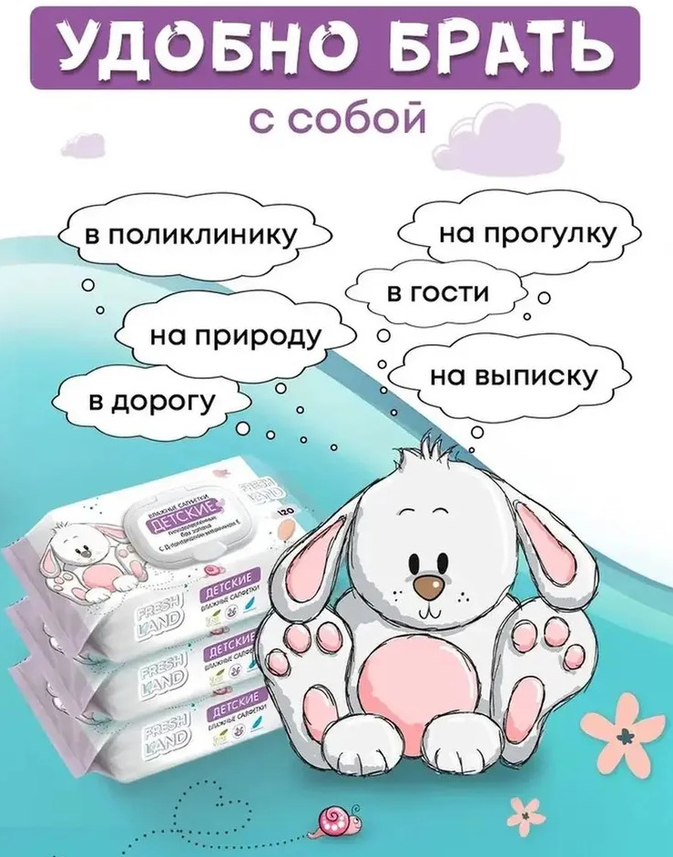 Freshland Влажные детские салфетки с Д-пантенолом «Зайка»