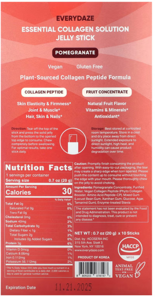 Everydaze Essential Collagen Solution — желе в стиках с гранатом, 10 штук по 20 г.