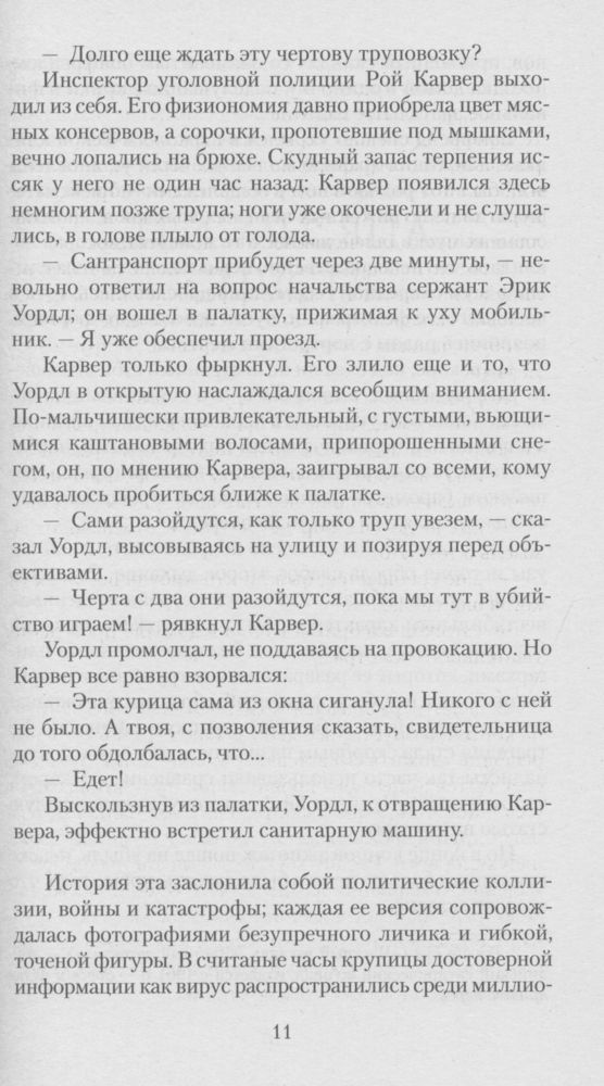 Книга из разряда детективных романов, понравилась, хороший перевод, удобно читать в поезде, самолете, легкий, мягкий переплет.