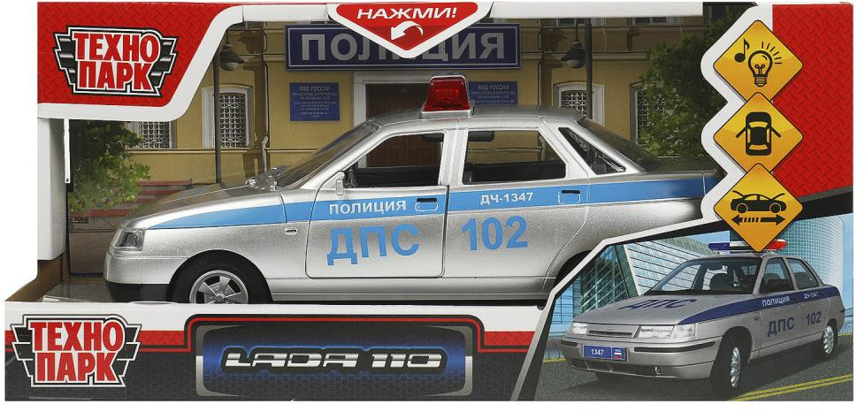 Инерционная пластиковая модель «Lada-110. Полиция» ТМ «Технопарк» — прекрасный подарок для ребёнка: |