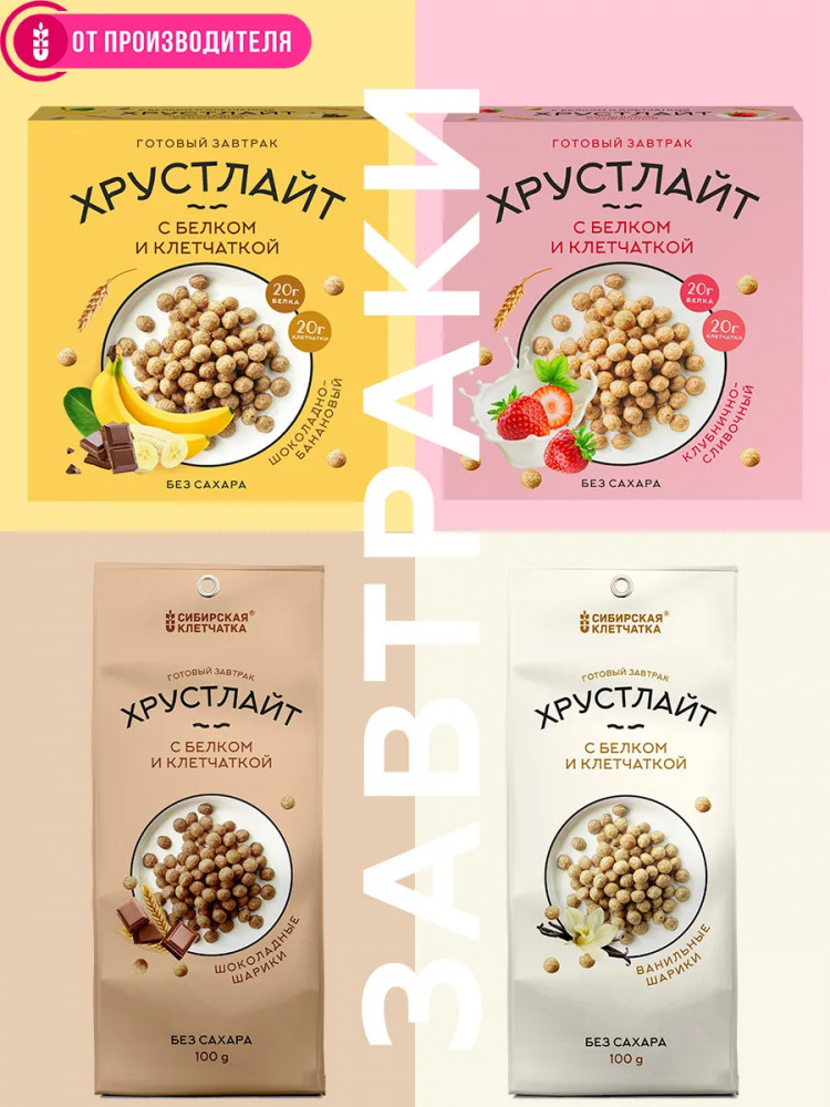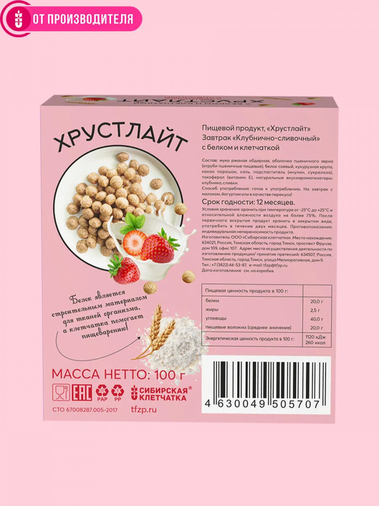Сибирская клетчатка Сухой завтрак с белком и клетчаткой «Клубнично-сливочный»
