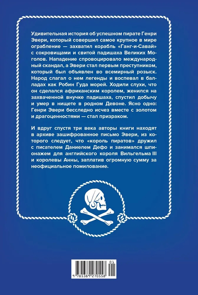 💳 Оплатить за товар можно при получении 🇰🇿 Есть бесплатная доставка по Казахстану от 1 дня 🎁 Копите бонусы с каждой покупки Серия: Исторический интерес Удивительная история об успешном пирате Генри Эвери, который совершил самое крупное в мире ограбление — захватил корабль «Ганг-и-Савай» с сокровищами и свитой падишаха Великих Моголов. Нападение спровоцировало международный скандал, а Эвери стал первым преступником, объявленным во всемирный розыск. Народ слагал о нем легенды и воспевал в балладах как «Робин Гуда морей». Ходили слухи, что он сделался африканским королем, женился на захваченной внучке падишаха, спустил добычу и умер в нищете в родном Девоне. |