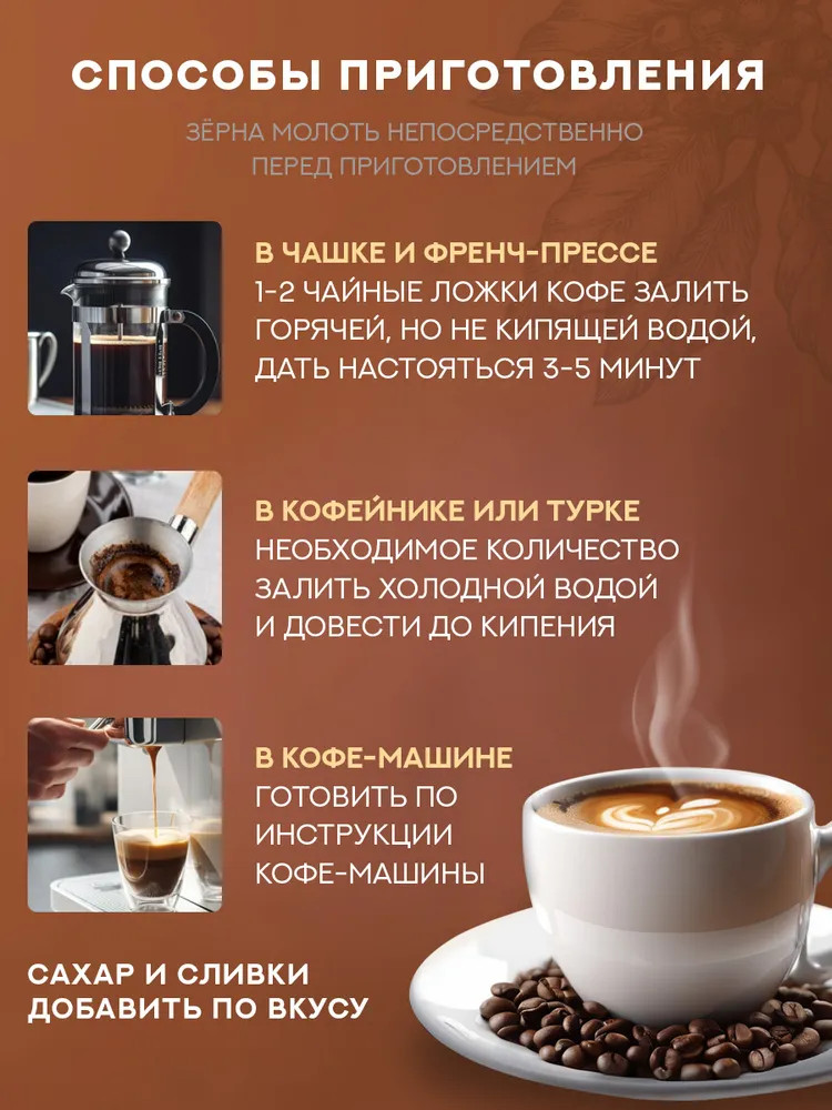 Кофе в зернах Barista PRO Supremo — это новинка, созданная для истинных ценителей кофе. Идеально сбалансированная смесь отборных сортов арабики из Бразилии и Африки дарит утонченный вкус с нотами шоколада и цитруса. Средняя обжарка зерен придает напитку насыщенность, сохраняя благородный купаж и приятную кислинку, которая делает каждую чашку по-настоящему особенной. Этот кофе подходит для приготовления любым способом — он великолепно раскрывается в автоматической кофемашине, турке, роковой кофемашине, а также при заваривании в кружке. Его универсальность позволяет создавать разнообразные напитки — от крепкого эспрессо и ароматного американо до нежного капучино и воздушного латте. Особенно хорошо он сочетается с молоком, раскрывая свою мягкость и глубину вкуса.