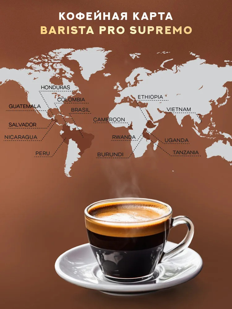 Преимущества Barista PRO Supremo очевидны. Он идеально подойдет как для утреннего пробуждения, так и для уютных вечеров. Сбалансированная кислинка, насыщенный аромат и гармония шоколадно-цитрусовых нот делают этот кофе выбором настоящего ценителя. Если вы ищете безупречный вкус и высокое качество, то этот бленд — обязательный к покупке. Попробовав его однажды, вы поймете, что кофе может быть искусством.