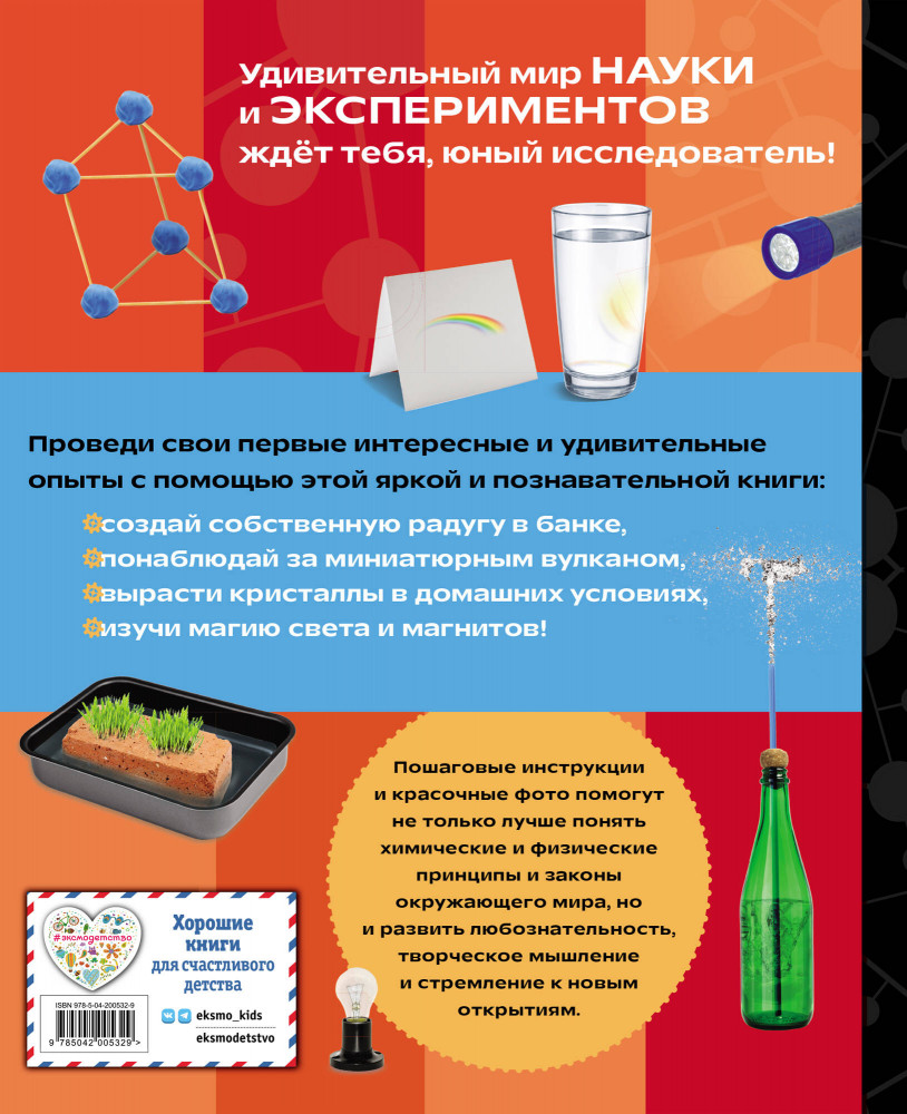 💳 Оплатить за товар можно при получении 🇰🇿 Есть бесплатная доставка по Казахстану от 1 дня 🎁 Копите бонусы с каждой покупки Серия: Атласы и энциклопедии В этой энциклопедии школьников ждёт увлекательный мир опытов! Здесь собраны самые интересные эксперименты с воздухом, светом, звуком, гравитацией, магнетизмом и электричеством, а также опыты по химии и естествознанию. Подробные пошаговые инструкции помогут ребятам правильно провести каждый эксперимент и в то же время узнать много нового. А ещё книга разбудит творческое мышление и поможет понять законы окружающего мира. |