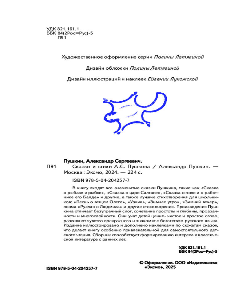 💳 Оплатить за товар можно при получении 🇰🇿 Есть бесплатная доставка по Казахстану 🎁 Копите бонусы с каждой покупки Серия: Пломбир. Классика в школе В книгу входят все знаменитые сказки Пушкина, такие как «Сказка о рыбаке и рыбке», «Сказка о царе Салтане», «Сказка о попе и о работнике его Балде» и другие, а также лучшие стихотворения для школьников: «Песнь о вещем Олеге», «Узник», «Зимнее утро», «Зимний вечер», поэма «Руслан и Людмила» и другие стихотворения. |