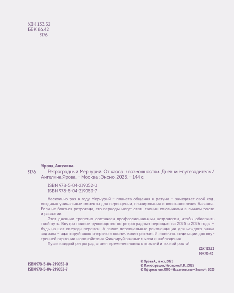 💳 Оплатить за товар можно при получении 🇰🇿 Есть бесплатная доставка по Казахстану от 1 дня 🎁 Копите бонусы с каждой покупки Серия: Новый Год. Подарочные ежедневники. Знаки зодиака Несколько раз в году Меркурий, планета общения и разума, замедляет свой ход, создавая уникальные моменты для переоценки, планирования и восстановления баланса. Если не бояться ретрогада, его периоды могут стать твоими союзниками в личном росте и развитии. Этот дневник трепетно составлен профессиональным астрологом, чтобы облегчить твой путь. Внутри полное руководство по ретроградным периодам на 2025 и 2026 годы — будь на шаг впереди перемен. А также персональные рекомендации для каждого знака Зодиака — адаптируй свою энергию к космическим ритмам. И, конечно, медитации для внутренней гармонии и спокойствия. Фиксируй важные мысли и наблюдения. Пусть каждый ретроград станет временем новых открытий и точкой роста! |