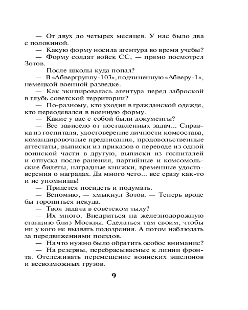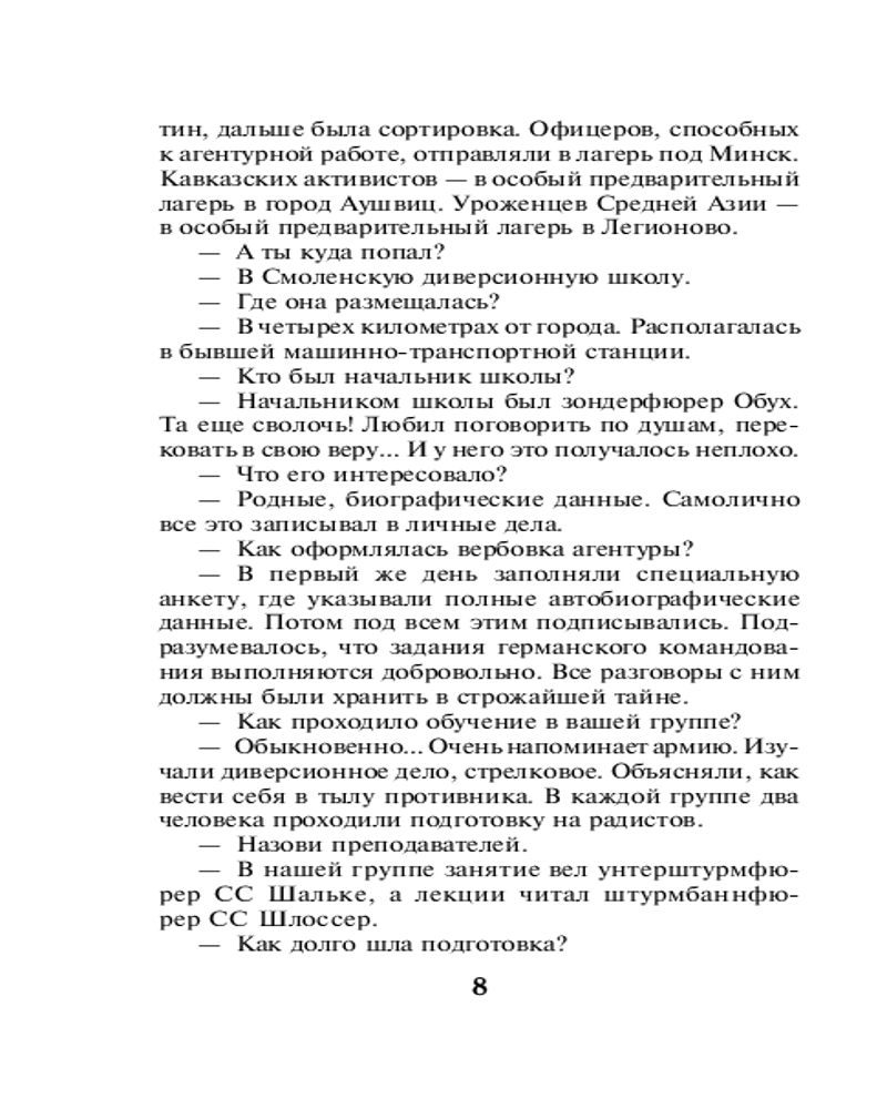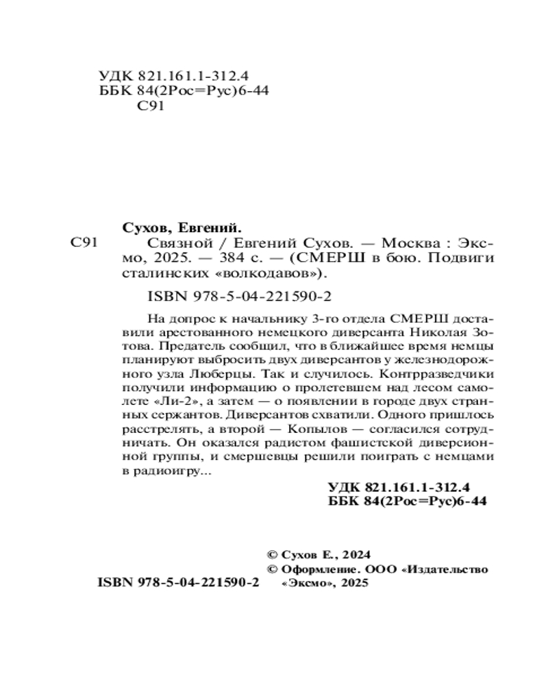 💳 Оплатить за товар можно при получении 🇰🇿 Есть бесплатная доставка по Казахстану от 1 дня 🎁 Копите бонусы с каждой покупки Серия: СМЕРШ в бою. Подвиги сталинских «волкодавов» Самые интересные романы о сталинском спецназе — СМЕРШе. На допрос к начальнику 3-го отдела СМЕРШа доставили арестованного немецкого диверсанта Николая Зотова. Предатель сообщил, что в ближайшее время немцы планируют выбросить двух диверсантов у железнодорожного узла Люберцы. Так и случилось. Контрразведчики получили информацию о пролетевшем над лесом самолете ЛИ-2, а затем — о появлении в городе двух странных сержантов. Диверсантов схватили. Одного пришлось расстрелять, а второй — Копылов — согласился сотрудничать. Он оказался радистом фашистской диверсионной группы, и смершевцы решили поиграть с немцами в «радиоигру»... |