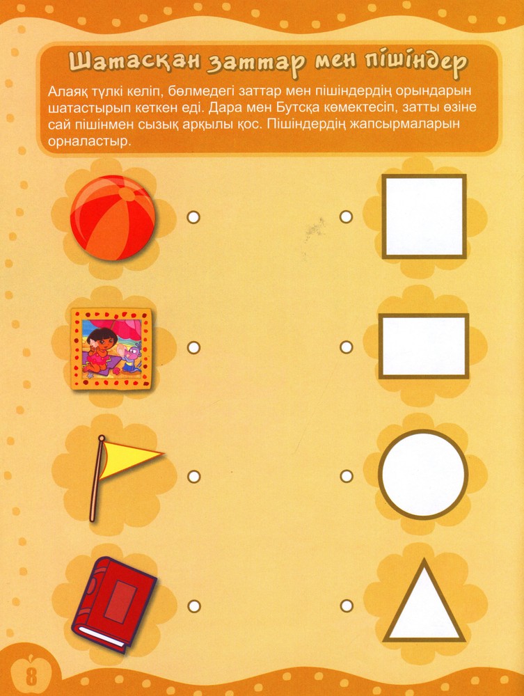 Баланы мектепке даярау – өте маңызды және жауапты іс. Топтаманың бұл кітаптарының алдына қойған мақсаты да осы. Бала қоршаған ортамен танысады, тіл байлығын арттырады, ағылшын тіліндегі жаңа сөздермен, пішіндермен, түстермен, қазақ әліпбиімен танысады, қарапайым математикалық ұғымдарды қалыптастырады, кеңістікті бағдарлап үйренеді, жан-жануарларды сүю, табиғатты аялау, оған қамқор болу керектігін түсінеді. Түрлі тапсырмаларды орындап, көптеген мағлұмат алады. |