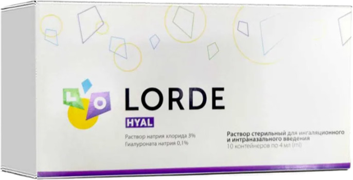 Lorde Hyal — стерильный раствор для ингаляционного и интраназального введения, облегчающий дыхание путем разжижения и улучшения выведения секрета слизистой носа верхних и нижних дыхательных путей у пациентов с воспалительными заболеваниями органов дыхания за счет осматического эффекта. Гипертонический раствор натрия хлорида (3%) — натуральный и безопасный ингаляционный муколитик. Также содержит гиалуроновую кислоту — для дополнительного смягчения и увлажнения слизистой, а также уменьшения раздражающего действия гипертонического раствора соли при ингаляции.