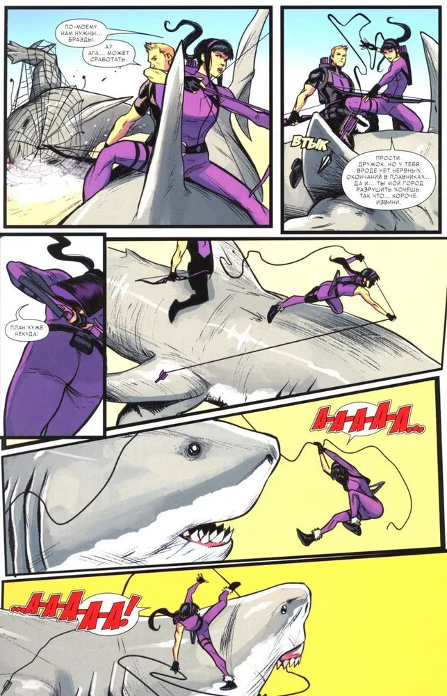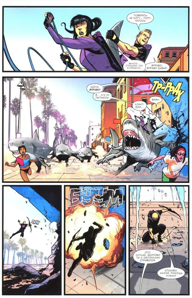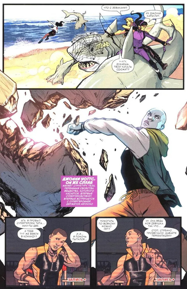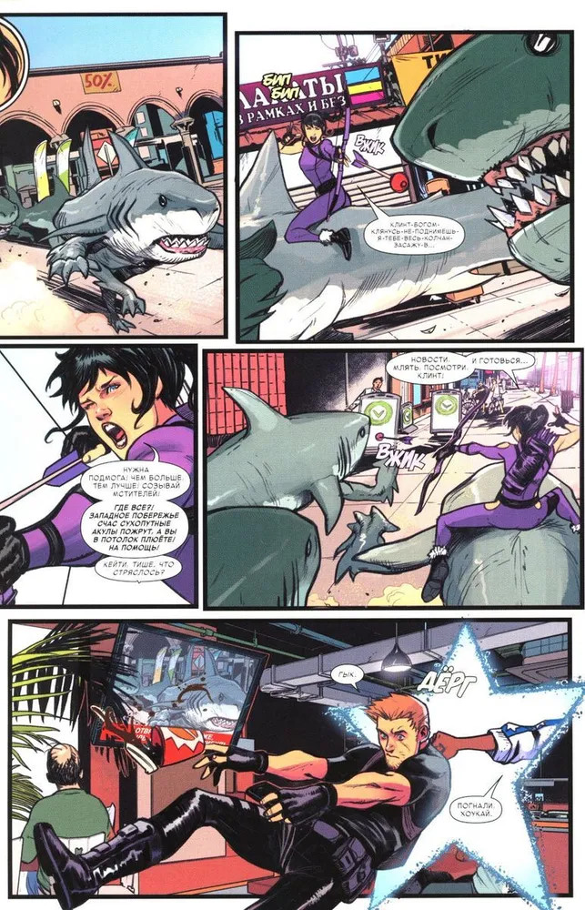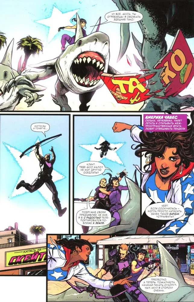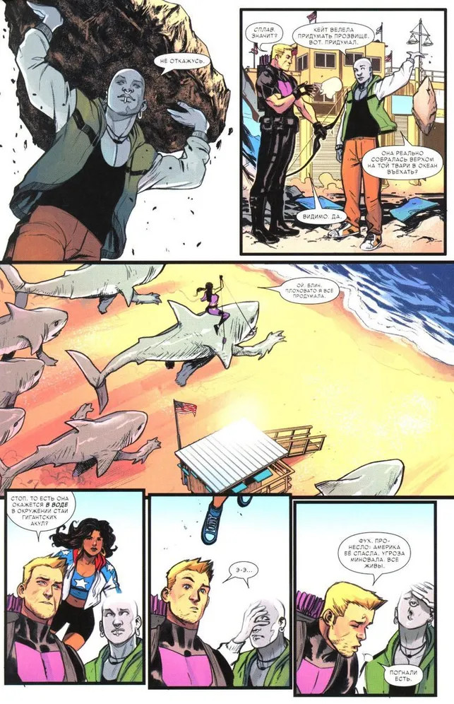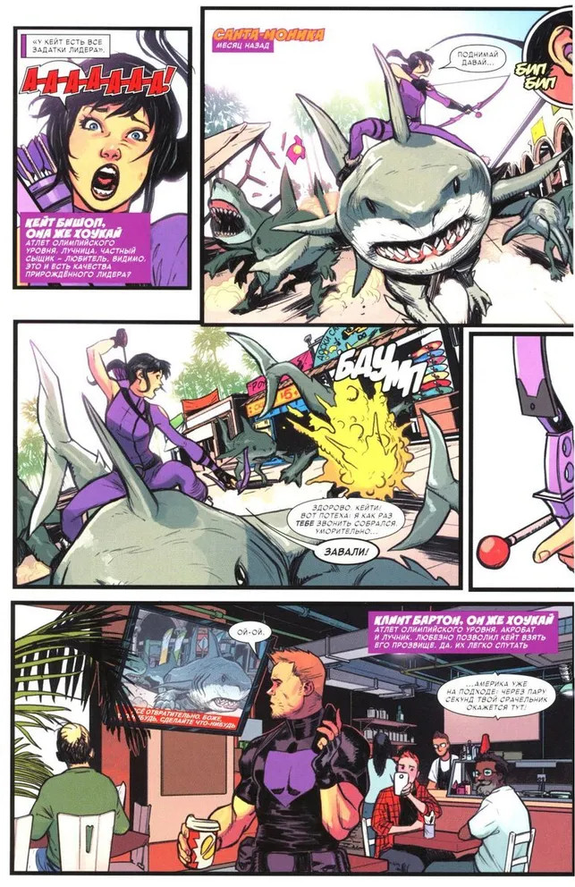 💳 Оплатить за товар можно при получении 🇰🇿 Есть бесплатная доставка по Казахстану от 1 дня 🎁 Копите бонусы с каждой покупки Грядёт новая эра в истории величайших героев Тихоокеанского побережья! Встречайте: Хоукай (ваша любимая Кейт Бишоп!), второй Хоукай (Клинт Бартон!), Америка Чавес, Кид Омега (Квентин Квайр!), Гвенпул (Гвендолин Пул!) и парень по прозвищу Сплав (кто?)! Всё верно: они — новые Мстители Западного побережья! И хочется верить, что им под силу спасти мир, ведь на него вот-вот обрушатся вампиры, женщины ростом с небоскрёб, местные Повелители Зла и целый косяк сухопутных акул! Держись, Калифорния! А также: без преувеличения классическая история о Хоукаях и грандиозный дебют Гвенпул! |