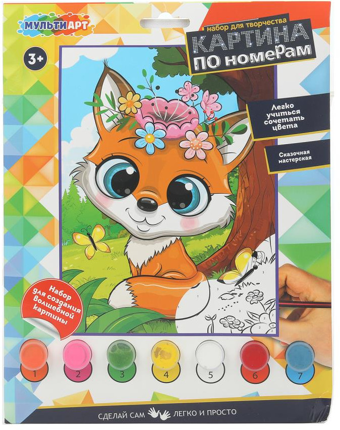 💳 Оплатить за товар можно при получении 🇰🇿 Есть бесплатная доставка по Казахстану от 1 дня 🎁 Копите бонусы с каждой покупки Серия: Сказочная мастерская Набор для росписи холста по номерам «Лис» из серии «Сказочная мастерская» ТМ «Мульти Арт» — отличный подарок для ребёнка, который будет способствовать развитию его творческих способностей. |