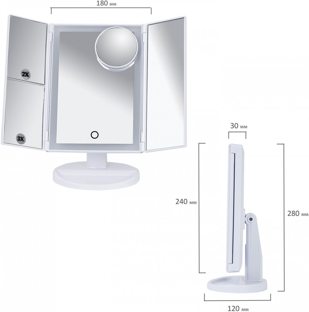 💳 Оплатить за товар можно при получении 🇰🇿 Есть бесплатная доставка по Казахстану от 1 дня 🎁 Копите бонусы с каждой покупки Гримерное зеркало Brabix с LED-подсветкой — это красивый и практичный аксессуар, которому будет рада любая женщина. Три режима подсветки позволят подобрать оптимальный свет для нанесения макияжа и проведения процедур по уходу за лицом. |