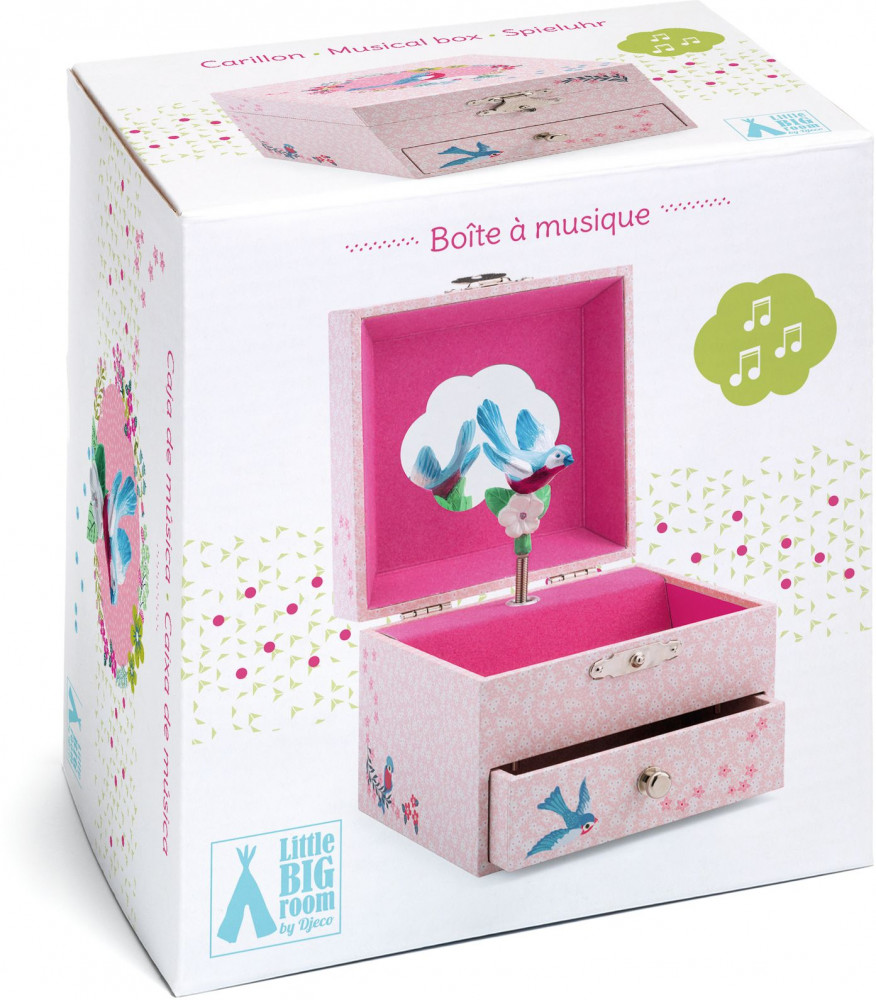 Djeco Музыкальная шкатулка «Зяблик»В данный момент этот товар отсутствует в продаже. Возможно, у нас найдется аналогичный или похожий товар здесь. Мелодия зябликов — это симпатичная музыкальная шкатулка с выдвижным ящиком для хранения украшений и секретных вещей. Поверните ручку, откройте коробку, и она оживает: изящно вырезанная птица, отраженная в фигурном зеркале, превращается в Антуана Ренара «время вишен» Антуана Ренара. |