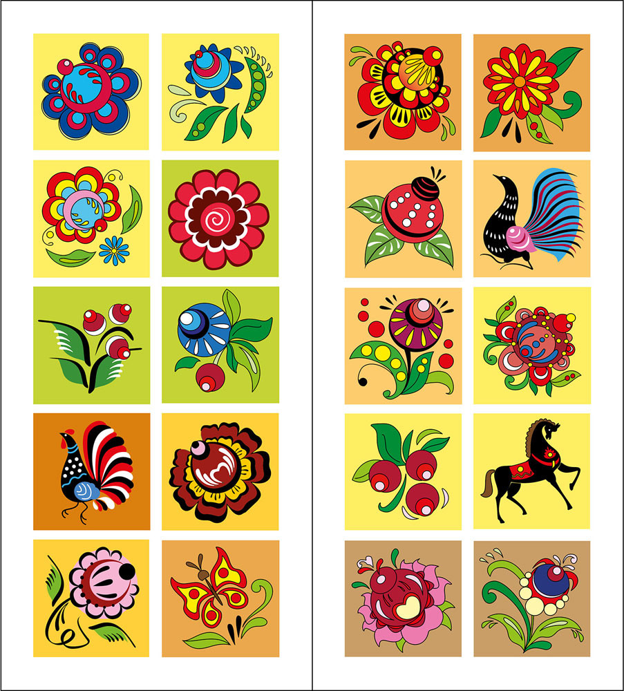 Городецкая роспись. Раскраска с наклейками-40% +10