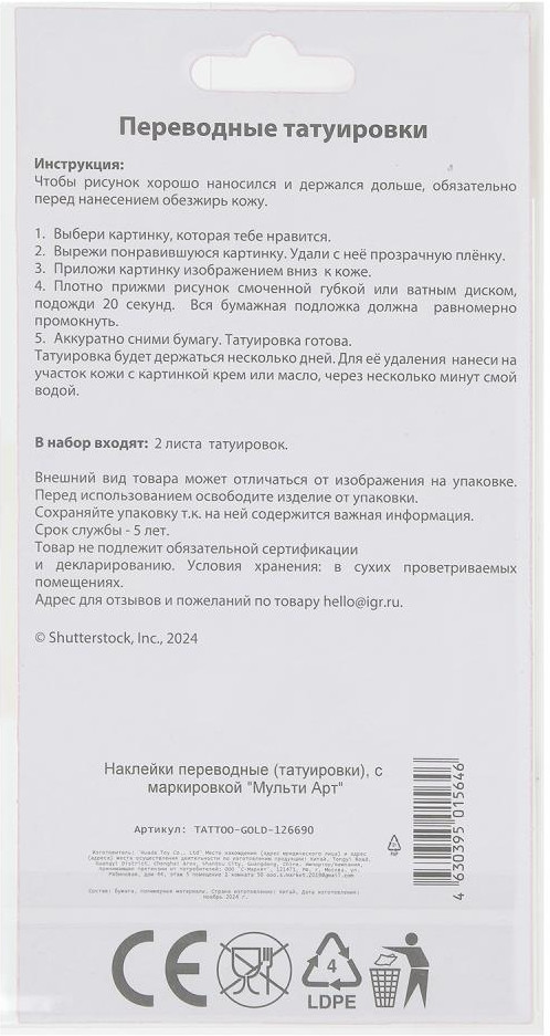 💳 Оплатить за товар можно при получении 🇰🇿 Есть бесплатная доставка по Казахстану от 1 дня 🎁 Копите бонусы с каждой покупки Переводные золотистые татуировки «Тропическая вечеринка» ТМ «Мульти Арт» — отличный способ внести в свою внешность что-то новое и оригинальное. При помощи этого набора можно украсить себя стильными картинками, которые легко смываются, безопасны для детей, а главное, их можно менять. Татуировки держатся несколько дней. Для их удаления необходимо нанести на участок кожи с картинкой крем или масло и смыть через несколько минут водой. |