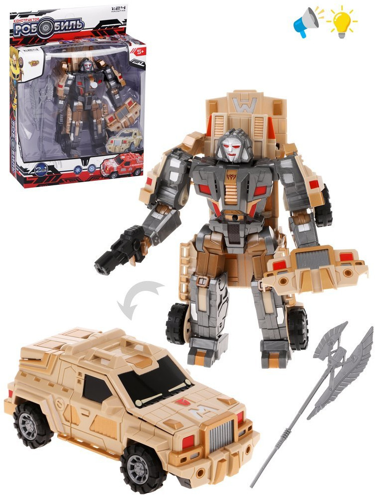 Наша игрушка Робот-трансформерВ данный момент этот товар отсутствует в продаже. Возможно, у нас найдется аналогичный или похожий товар здесь. Трансформер — это мечта любого современного ребёнка! Потому что трансформеры представляют собой сразу две модные игрушки в одном. Данная модель может принимать как форму робота, так и форму машины. Трансформировать её из одного состояния в другое — очень увлекательный процесс, который захватывает всё внимание ребёнка. В игрушке предусмотрены светозвуковые функции. Свет: мигание лампы на корпусе красным и синим цветом. Звук: «космические» звуки. Вместе с трансформером прилагается иллюстрированная инструкция по сборке, а также игрушечное оружие. Размер трансформера в виде робота составляет 16×8х23 см. |
