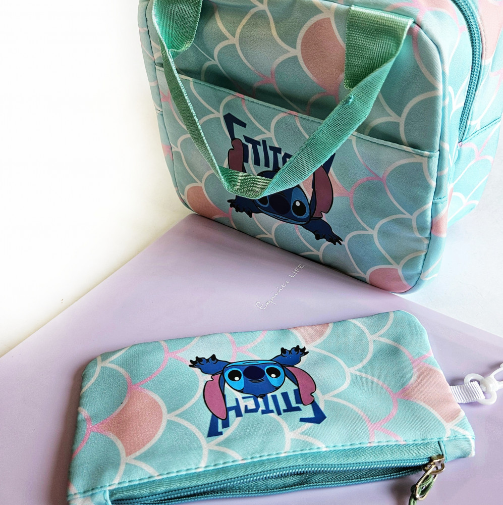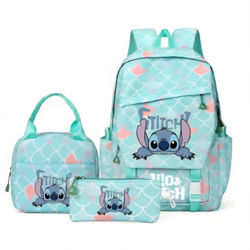 Потрясающий многофункциональный набор: рюкзак + сумка + пенал в одном дизайне идеально подойдет для школы, спорта, прогулок или поездок. Этот универсальный комплект — рюкзак, сумка-холодильник с высокой термоизоляцией- для завтраков и обедов и пенал-косметичка. С ним можно ходить на тренировки и любой другой кружок или секцию, в походы, путешествия. Рюкзак для 1-5 класса выполнен из прочного материала с водоотталкивающими свойствами, что обеспечивает надежную защиту содержимого. Термо-сумка универсального размера 20×20×10 см со специальной усиленной изоляцией отлично сохранит обед корячим, а холодные напитки останутся холодными в течение длительного времени. Косметичка-пенал размером 20×9.5 см вмещает необходимые для школы канцелярские принадлежности либо столовые приборы для похода, косметику и другие полезные вещи в путешествии. Поверхность украшена яркими принтами озорного Ститча, который так нравится детям и взрослым.