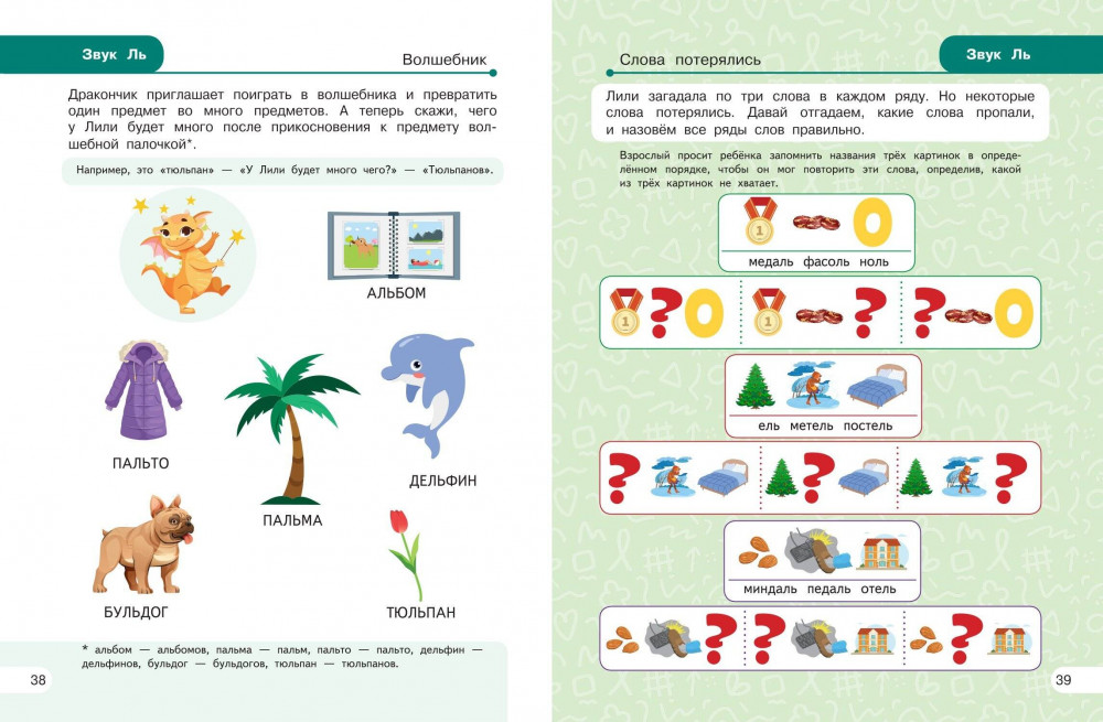 💳 Оплатить за товар можно при получении 🇰🇿 Есть бесплатная доставка по Казахстану от 1 дня 🎁 Копите бонусы с каждой покупки Серия: Логопедический тренажёр В книге представлена система упражнений для автоматизации звуков [л] и [ль] в речи ребёнка. В норме сонорные звуки [л] и [ль] начинают правильно звучать в речи дошкольника в 5–6 лет. Если этого не происходит, необходима консультация логопеда, чтобы он помог ему добиться правильного произношения. И только потом можно приступать к самостоятельным занятиям дома. Книга входит в серию пособий «Логопедический тренажёр», предназначенных для педагогов и родителей, чтобы самостоятельно работать над речью дошкольника. Яркие иллюстрации и увлекательные задания помогут превратить монотонную и однообразную работу по закреплению в речи звуков [л] и [ль] в увлекательную игру. |