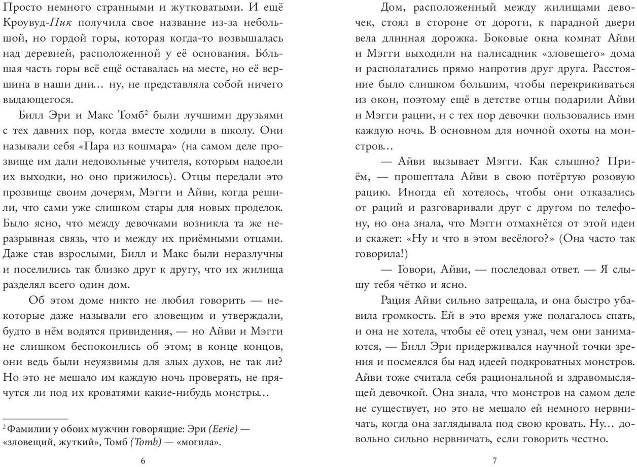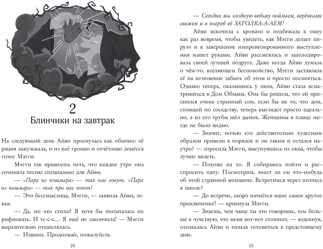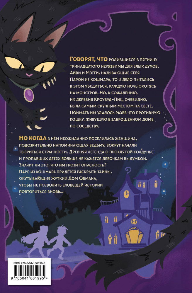 💳 Оплатить за товар можно при получении 🇰🇿 Есть бесплатная доставка по Казахстану от 1 дня 🎁 Копите бонусы с каждой покупки Серия: Пара из кошмара Говорят, что родившиеся в пятницу, тринадцатого, неуязвимы для злых духов. Айви и Мэгги, называющие себя «Парой из кошмара», то и дело пытались в этом убедиться, каждую ночь охотясь на монстров. Но, к сожалению, их деревня Кроувуд-Пик, очевидно, была самым скучным местом на свете. Поймать им удалось разве что противную кошку, живущую в заброшенном доме по соседству. Но когда в нём неожиданно поселилась женщина, подозрительно напоминающая ведьму, вокруг начали твориться странности. Древняя легенда о проклятой колдунье и пропавших детях больше не кажется девочкам выдумкой. Значит ли это, что им грозит опасность? Паре из кошмара придётся раскрыть тайны, окутывающие жуткий Дом Обмана, чтобы не позволить зловещей истории повториться вновь... |