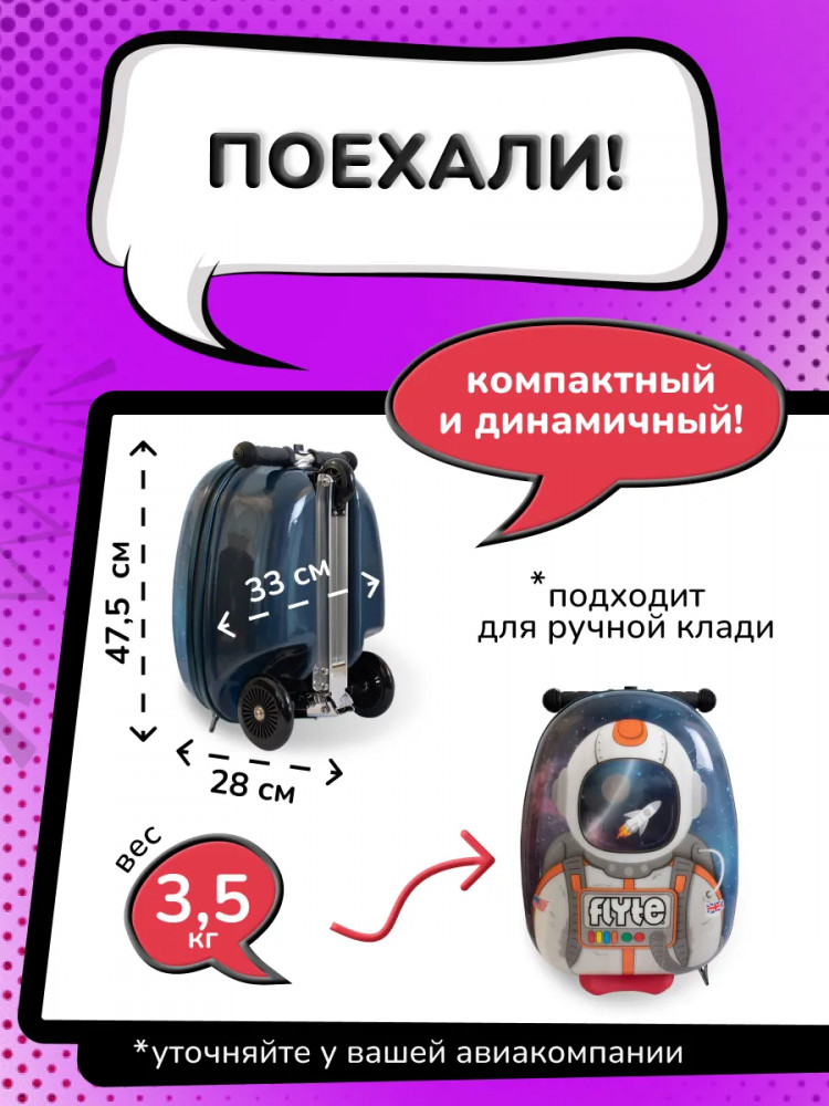 💳 Оплатить за товар можно при получении 🇰🇿 Есть бесплатная доставка по Казахстану от 1 дня 🎁 Копите бонусы с каждой покупки Серия: Flyte Теперь с обновлённым дизайном, который точно понравится вашему малышу, а путешествия будут еще более увлекательные! Перри — идеальный помощник для каждого ребенка, готового к любой экспедиции! Будь то поход в парк, каникулы или ночевка — маленьким путешественникам понравится этот многофункциональный компаньон. Это не просто чемодан, это еще и самокат. Сделайте путешествия веселыми для детей и легкими для родителей вместе с Flyte. |