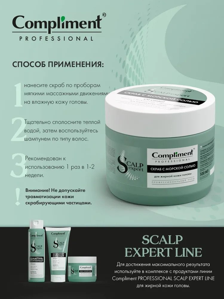 Compliment Скраб с морской солью для жирной кожи головы «Scalp expert line»