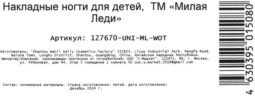 Милая Леди Набор ногтей накладных детских «Единорог»