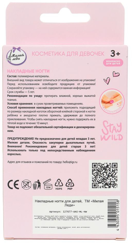 Накладные ногти «Единорог» ТМ «Милая леди» непременно понравятся маленькой моднице. Девочки в любом возрасте хотят быть красивыми. Специально для юных модниц был разработан этот крутой набор накладных ногтей. Маленькая принцесса обязательно оценит стильный дизайн и модную упаковку. Развивайте чувство стиля и вкуса, учите девочку создавать свой неповторимый образ вместе с косметикой и аксессуарами ТМ «Милая леди».