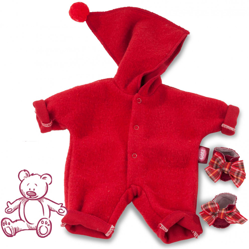 Стильный красный комбинезон с тёплыми ботиночками для пупсов Gotz. Такой комплект отлично согреет прохладным вечером вашего пупса. |