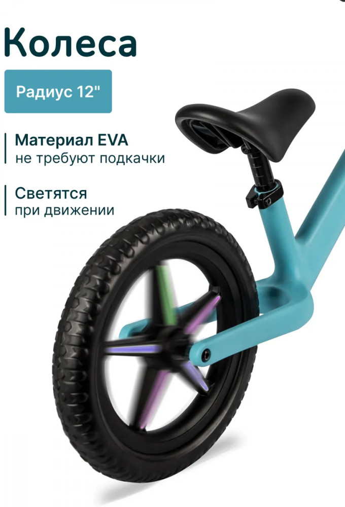 • безопасный — мягкие колеса из прочного материала EVA не требуют подкачки, а также защищают от тряски и ударных нагрузок во время катания; устойчивая конструкция оберегает юного райдера от падения; беговел изготовлен из качественных материалов, которые полностью безопасны для детей;