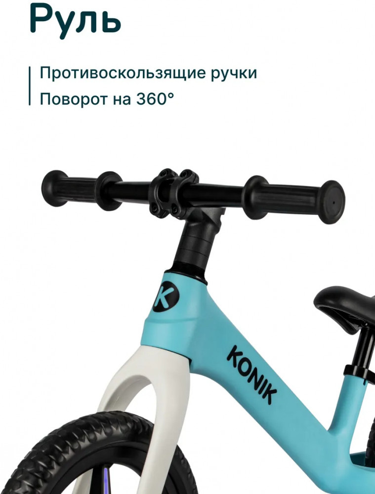 • простой в управлении — беговел Коник Го! это сочетание безопасности, стиля и функциональности; он улучшает координацию и баланс, помогает научиться кататься без помощи родителей и стимулирует детей заниматься спортом и вести активный образ жизни.