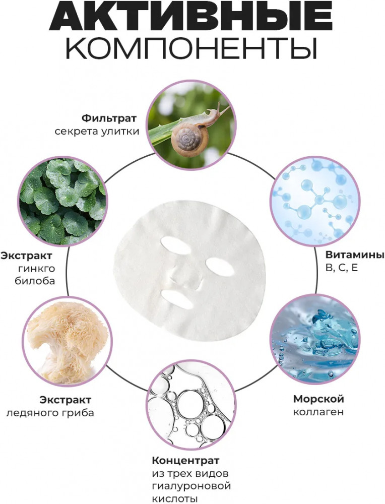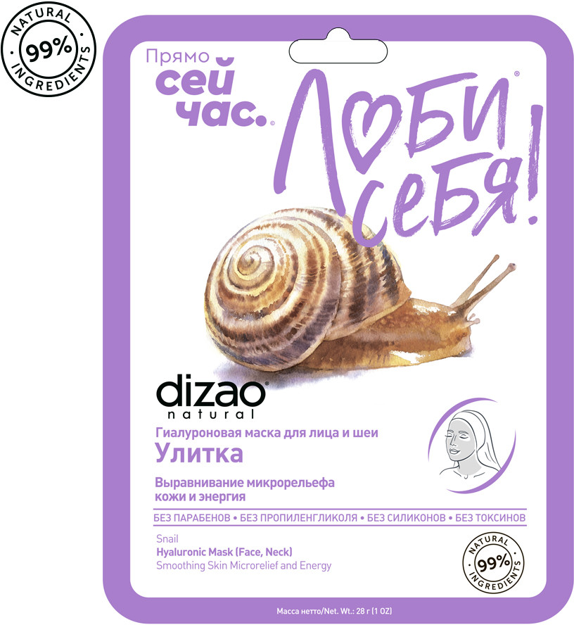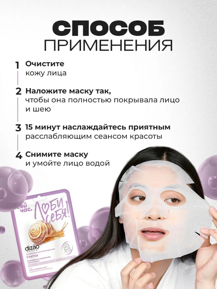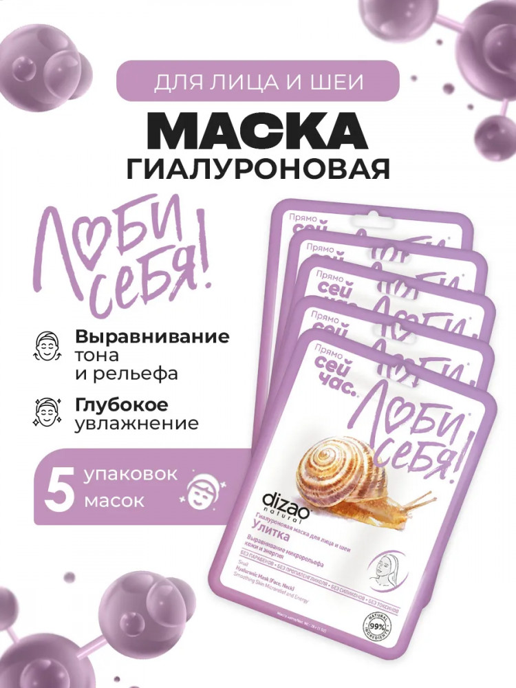 Dizao natural Набор масок для лица, шеи, век гиалуроновых «Улитка. Выравнивание микрольефа кожи и энергия»