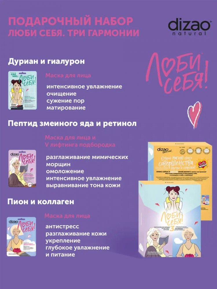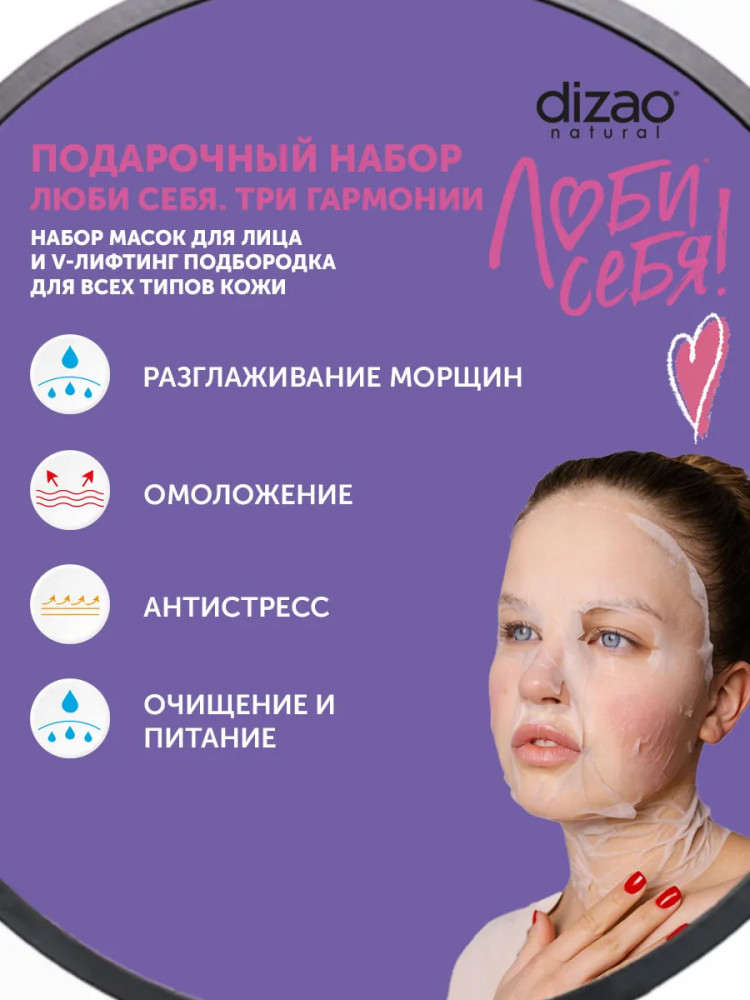 Dizao natural Набор масок для лица, шеи и подбородка «Три гармонии»